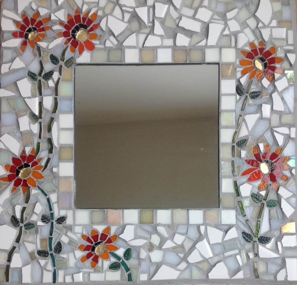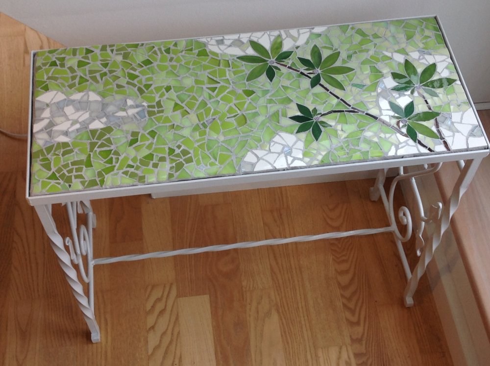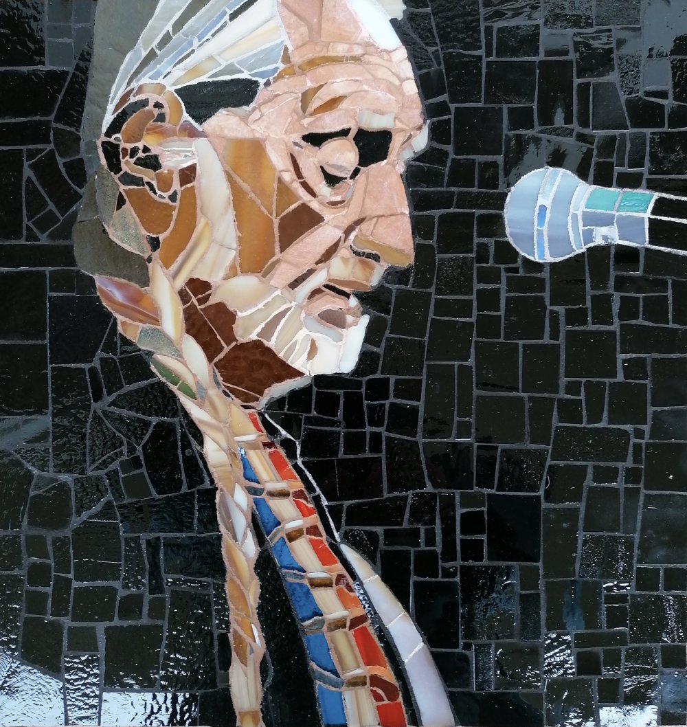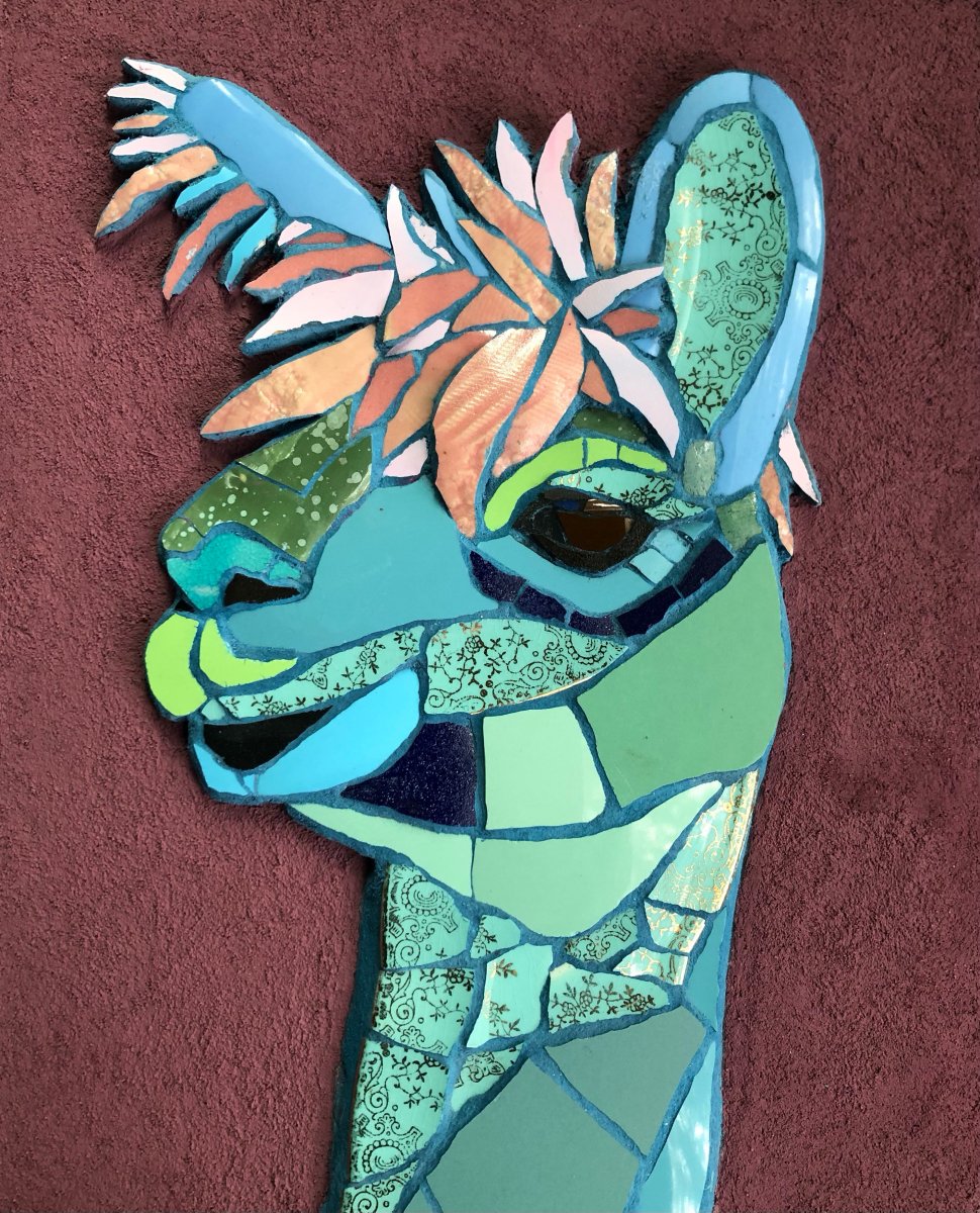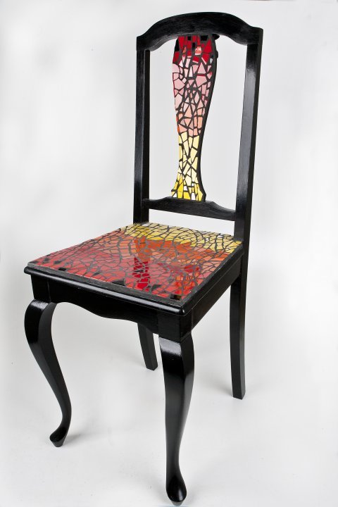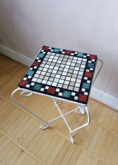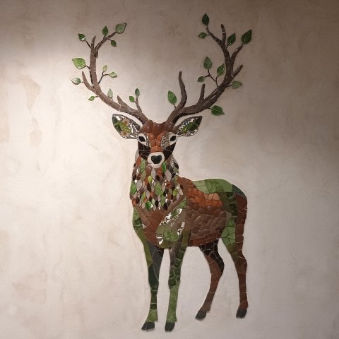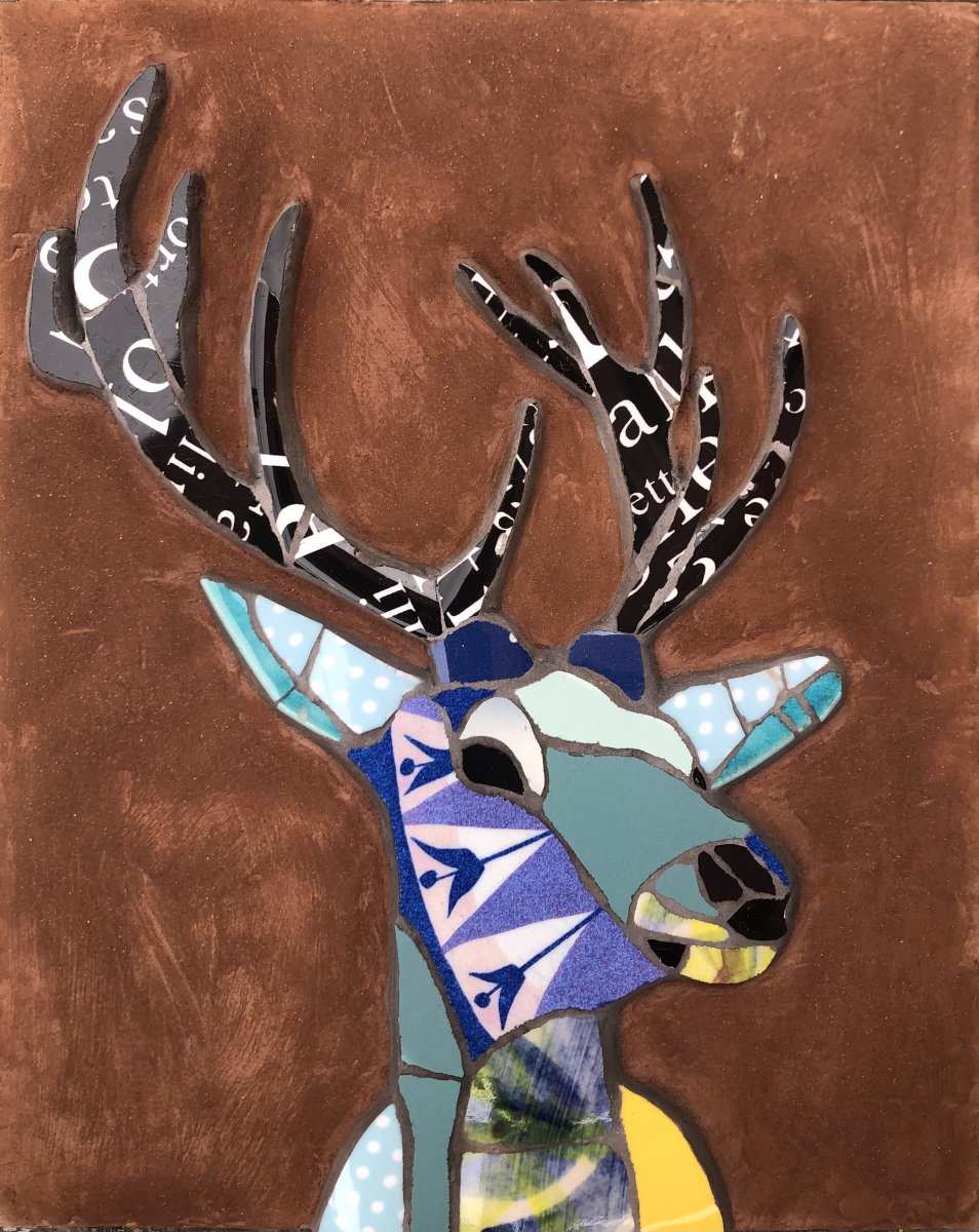 Den røde tråd, 2022. Mosaikbillede i glas, keramik, marmor og gamle mursten. 40 x 50 [...]cm. Pris: 8.900 kr